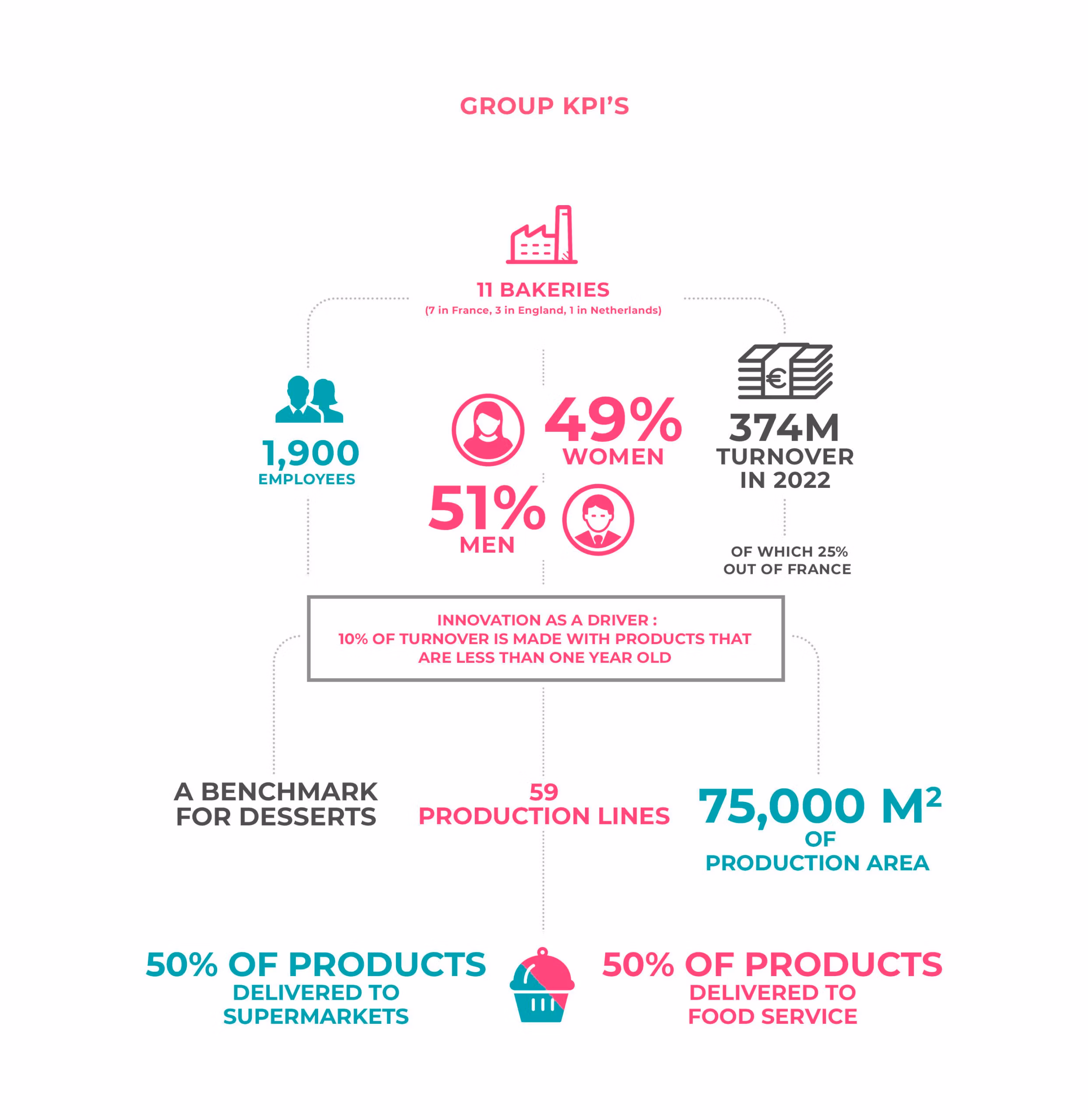 Rooted in pastry-making traditions and continuously listening to consumer needs, Mademoiselle Desserts has built a reputation in the pastry market by reconciling the standards of the best artisans with the consistency of the industry. The group’s first site was built in 1984 in the Dordogne region of France and employed 30 people. At the time, the group specialised in the production of frozen raw puff pastry, but has since expanded in France, England, and the Netherlands to broaden its expertise in pastry bases, custards, tarts, desserts, cheesecakes, carrot cake and other British cakes, mille-feuilles, gluten-free products, and more, in order to meet the needs of the French and international markets.