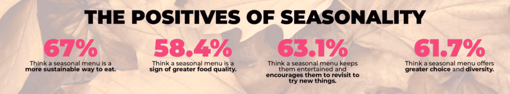 Taking the current Autumn/Winter season as an example: by incorporating seasonal ingredients and embracing the warm, earthy colour tones of colder days, you can capture your customers’ interest and, in turn, boost sales. A substantial 61% of consumers express a preference for a seasonal dessert menu over a static, unchanging one.
